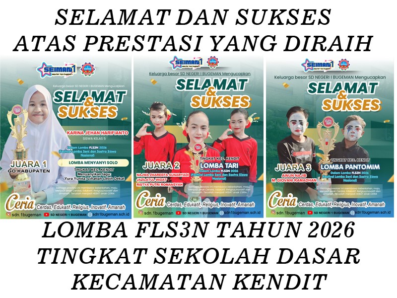 Meraih 3 Piala di Festival Lomba Seni dan Sastra Siswa Nasional (FLS3N) Tingkat SD Tahun 2026 Kecamatan Kendit, SDN I BUGEMAN siap Go Kabupaten sebagai Wadah Kreativitas dan Bakat Anak Bangsa